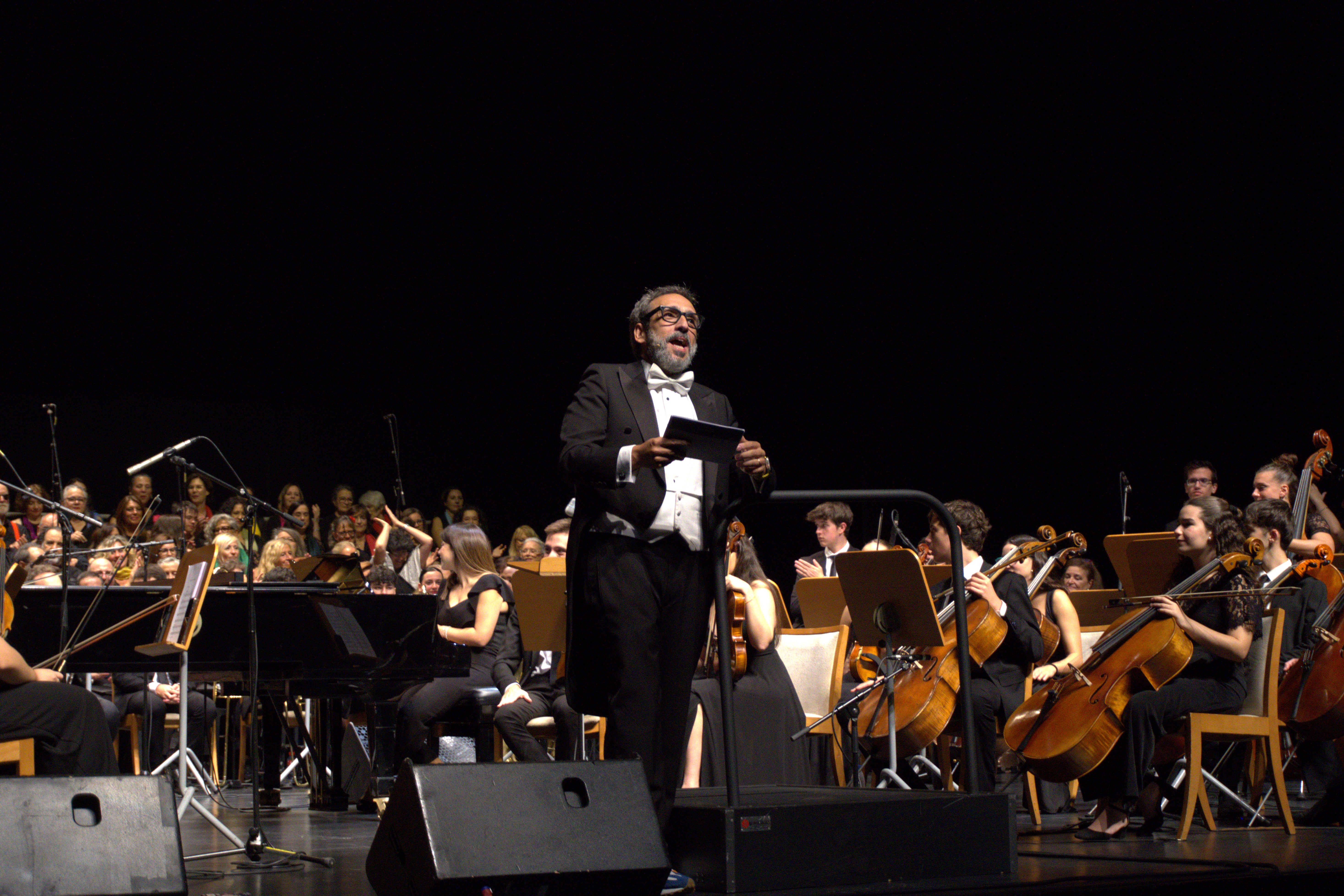 El tenor José Manuel Zapata presentó el concierto con simpatía y buen humor, y además nos regaló un brillante “’O sole mio” que hizo vibrar a todo el Palacio. El repertorio fue un viaje: desde la fuerza de “Carmina Burana” y la emoción de “Va, pensiero” de Verdi, hasta guiños al pop y al rock con “Love Me Do”, “I Want to Break Free”, “Enamorado de la moda juvenil” o “Ni tú ni nadie”. La música se sintió cercana, moderna y viva.