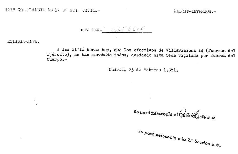 Desde el Ministerio de Defensa se han publicado informes del entonces CESID —actual Centro Nacional de Inteligencia—, resúmenes sobre la actuación de diferentes departamentos, análisis del ambiente en los cuarteles y abundante documentación vinculada a la causa judicial 2/81 tramitada ante el Consejo Supremo de Justicia Militar.