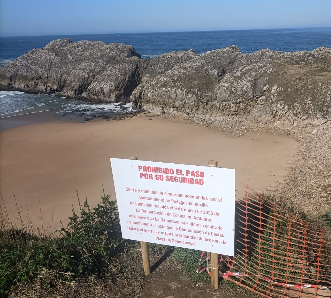 La Playa de Somocuevas, uno de los enclaves naturales más característicos del litoral cántabro, permanece cerrada al público por motivos de seguridad tras una solicitud trasladada el pasado 9 de marzo de 2026.