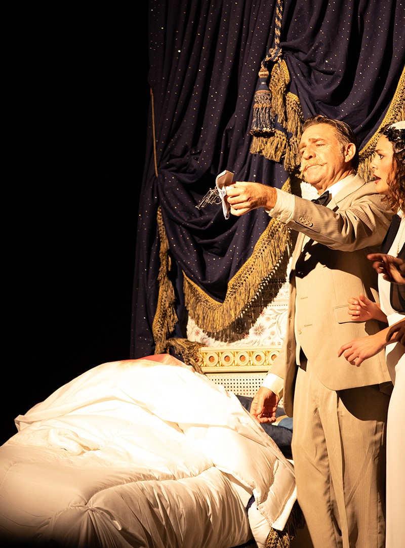 Al frente del elenco brilló Juanjo Artero, que encarnó a Hércules Poirot con una mezcla de elegancia, precisión y humor sutil que hizo vibrar a la audiencia. A su lado interpretaron Daniel González, Helena Font, Estela Muñoz, Paco Pellicer, Miguel Artero y otros actores que dieron vida a los múltiples pasajeros y sospechosos del caso. Un elenco maravilloso que llena el escenario de forma magistral.
