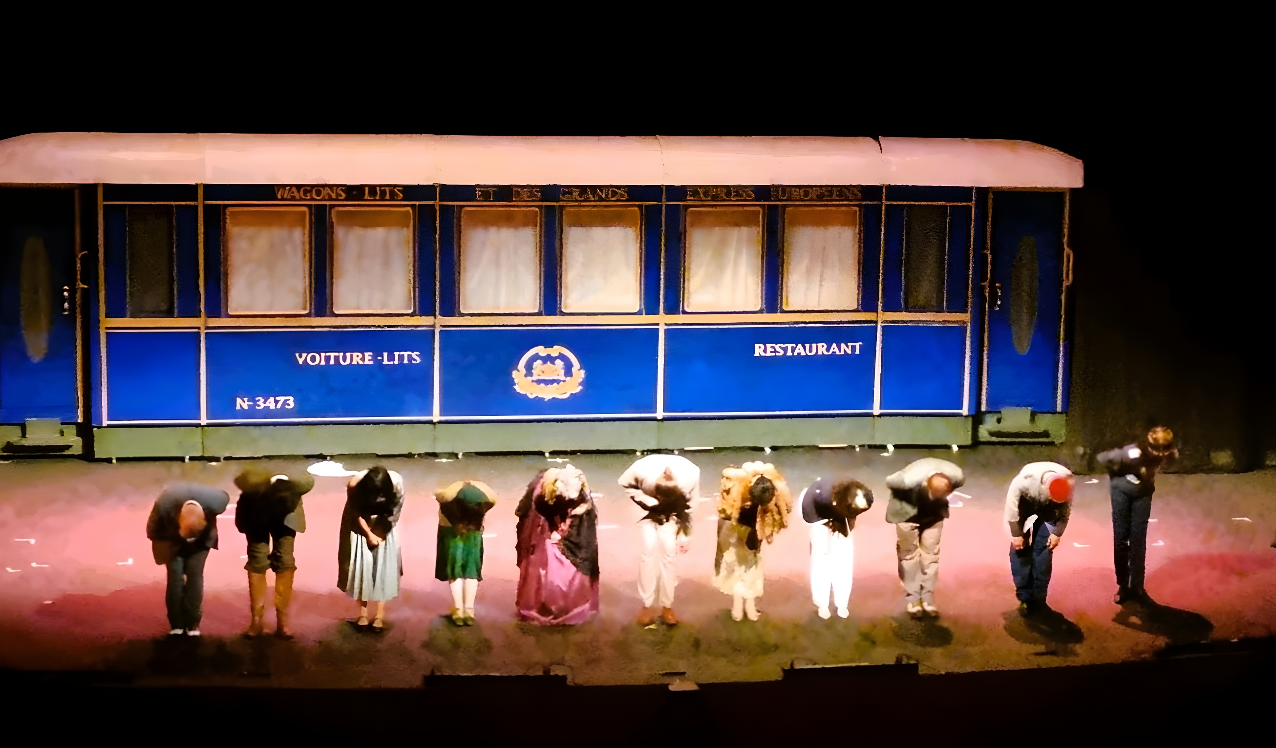 La puesta en escena fue, sencillamente, espectacular: escenas que se sucedían como vagones encadenados, cambios de escenografía fluidos, un tren imaginario que parecía avanzar por las vías del misterio y un juego de luces que acompañaba cada giro de la historia con creatividad. El público, incluso habiendo leído o visto antes la trama, se dejó llevar por la tensión narrativa y el dinamismo visual.