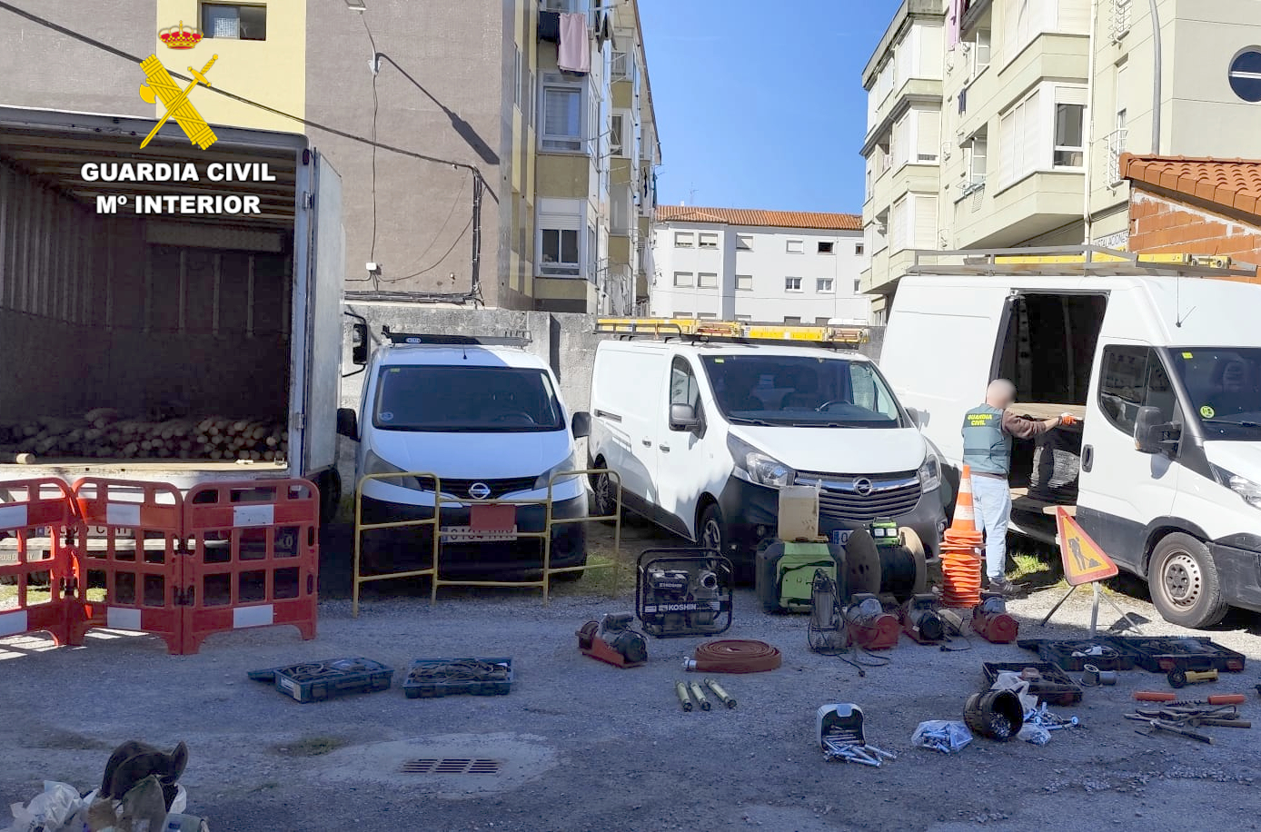 En la operación se recuperaron cerca de 2.100 kilos de cable de cobre procedente de infraestructuras de telecomunicaciones, además de intervenir los cuatro vehículos utilizados —tres furgonetas y un camión—, así como herramientas especializadas y material de señalización de obra.